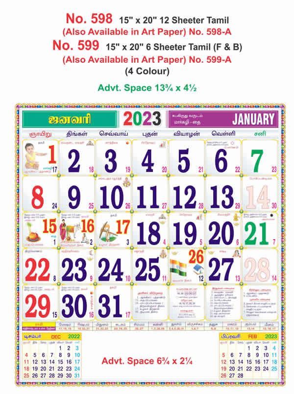 R598 Tamil - 15x20" 12 Sheeter Monthly Calendar Printing 2023