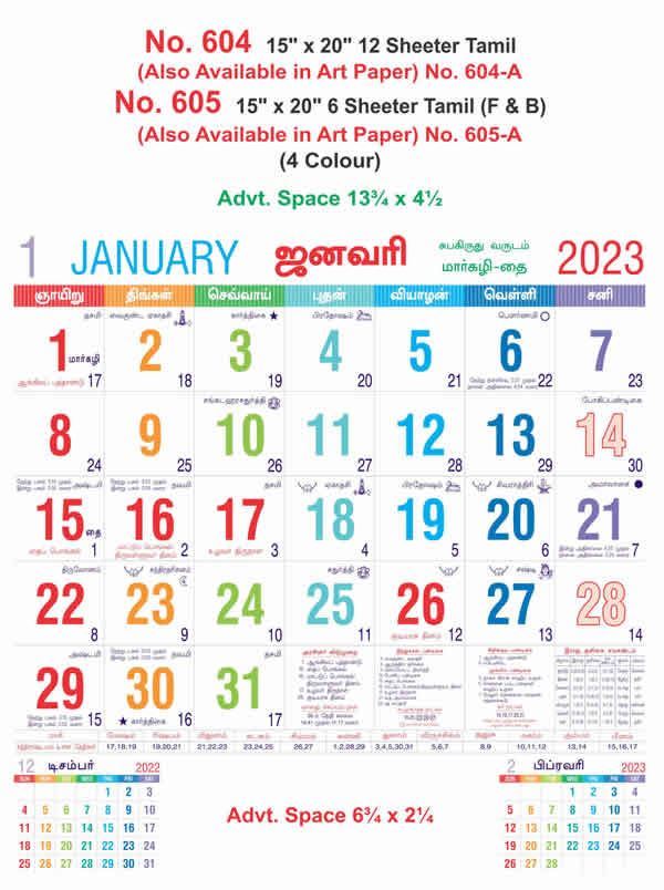 R604 Tamil - 15x20" 12 Sheeter Monthly Calendar Printing 2023