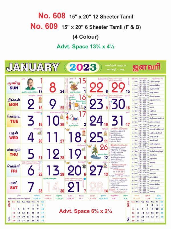R608 Tamil - 15x20" 12 Sheeter Monthly Calendar Printing 2023