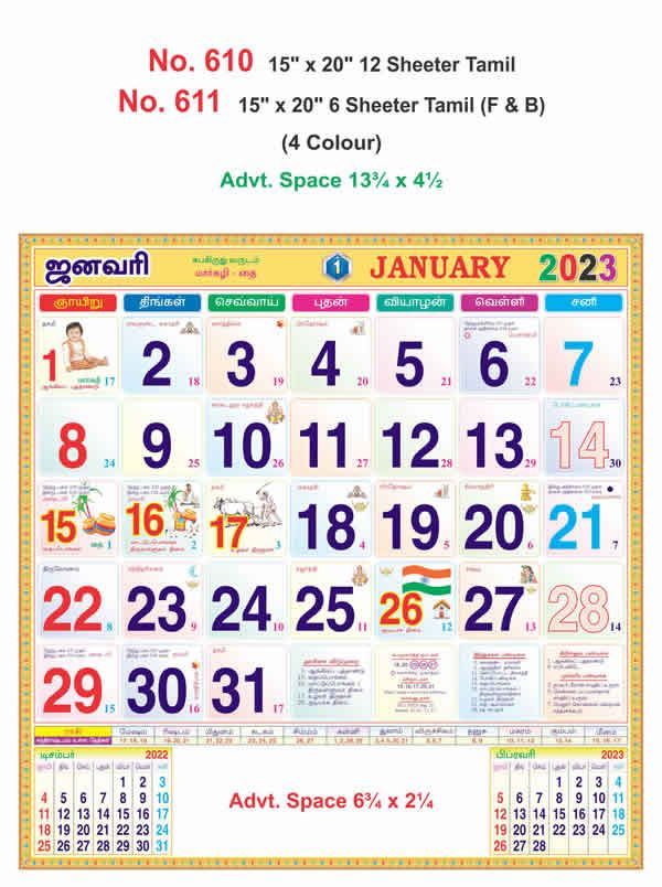 R604 Tamil - 15x20" 12 Sheeter Monthly Calendar Printing 2023