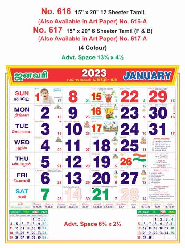 R616 Tamil - 15x20" 12 Sheeter Monthly Calendar Printing 2023