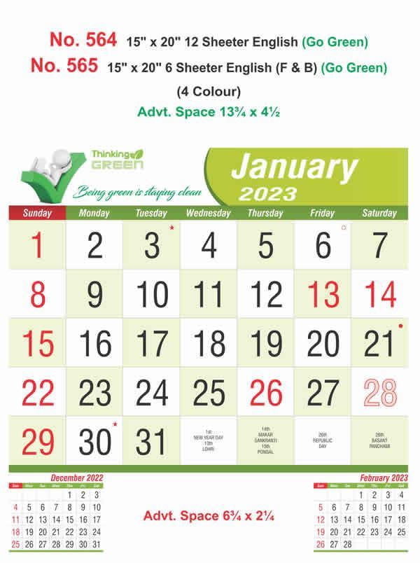 Key Features of R564 English(Go Green) - 15x20" 12 Sheeter Monthly Calendar Printing 2023