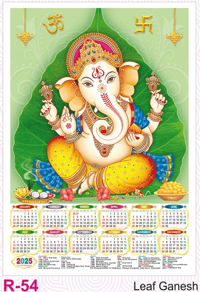 R54 Leaf Ganesh - Polyfoam Calendar Printing 2025