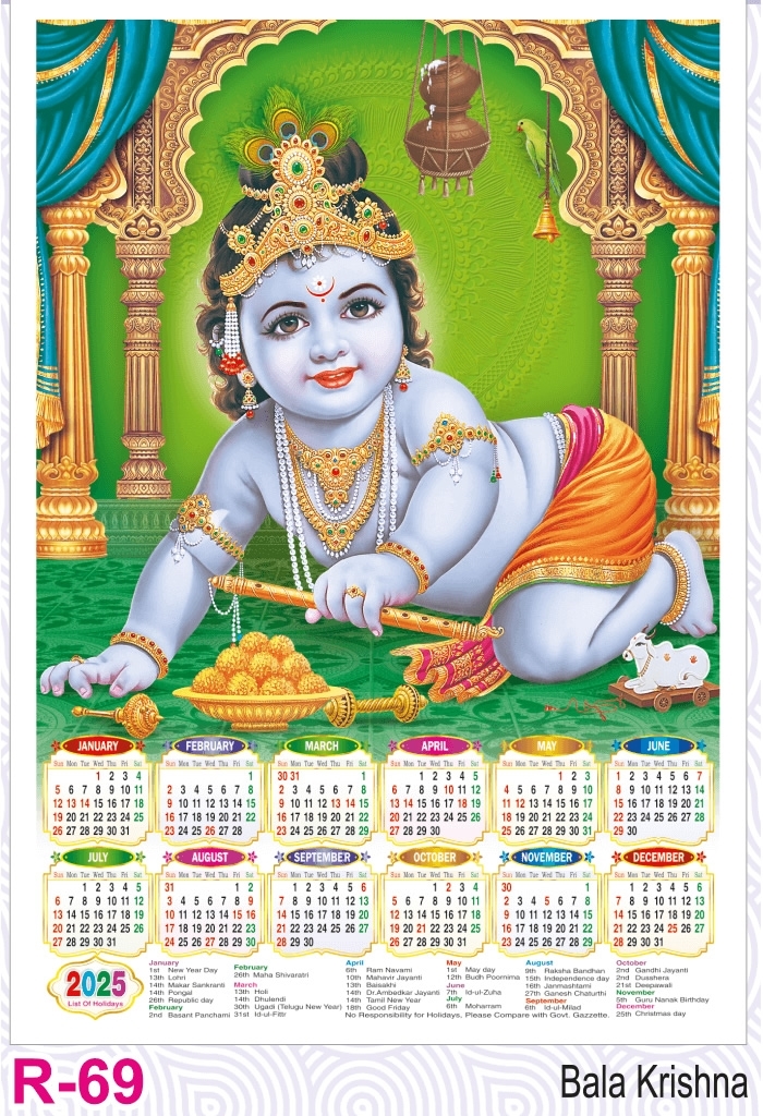 Key Features of R69 Bala Krishna - Polyfoam Calendar Printing 2025