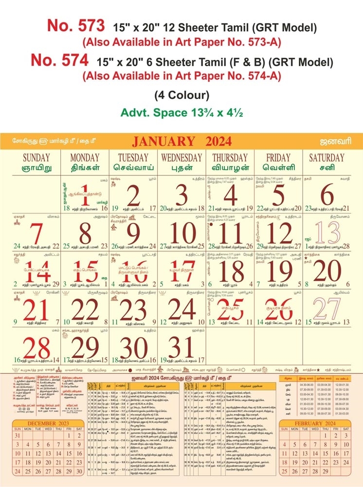 R573 Tamil(GRT Model) - 15x20" 12 Sheeter Monthly Calendar Printing 2024