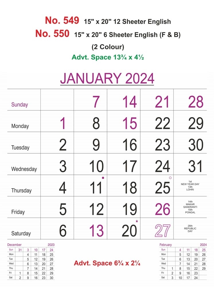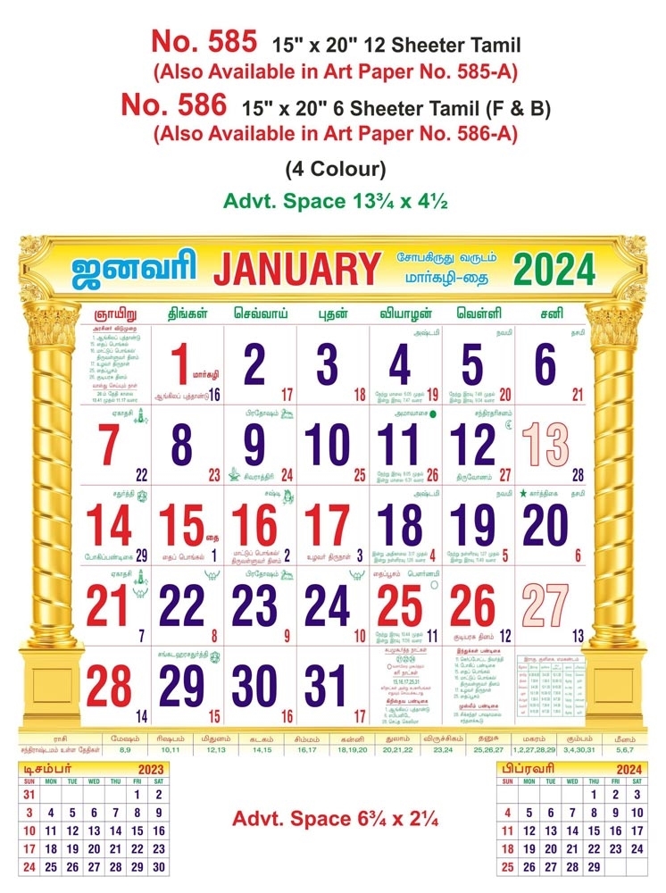 R599 Tamil - 15x20" 12 Sheeter Monthly Calendar Printing 2024