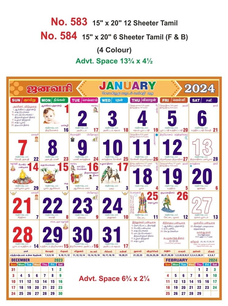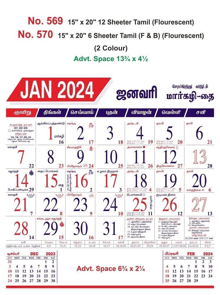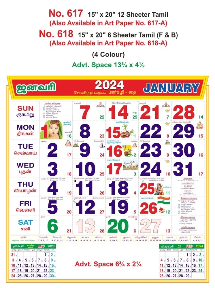 R601 Tamil - 15x20" 12 Sheeter Monthly Calendar Printing 2024