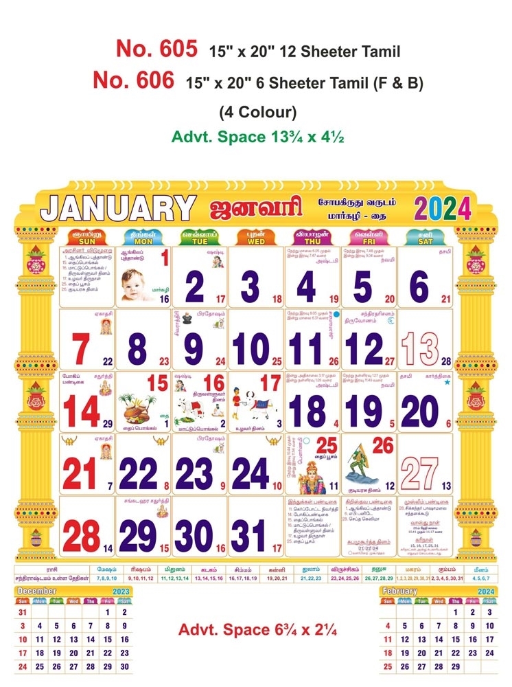 R605 Tamil - 15x20" 12 Sheeter Monthly Calendar Printing 2024