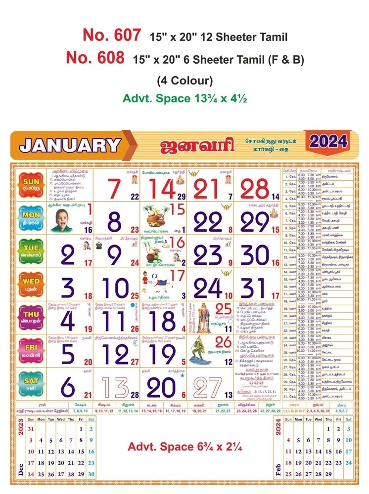 R607 Tamil - 15x20" 12 Sheeter Monthly Calendar Printing 2024