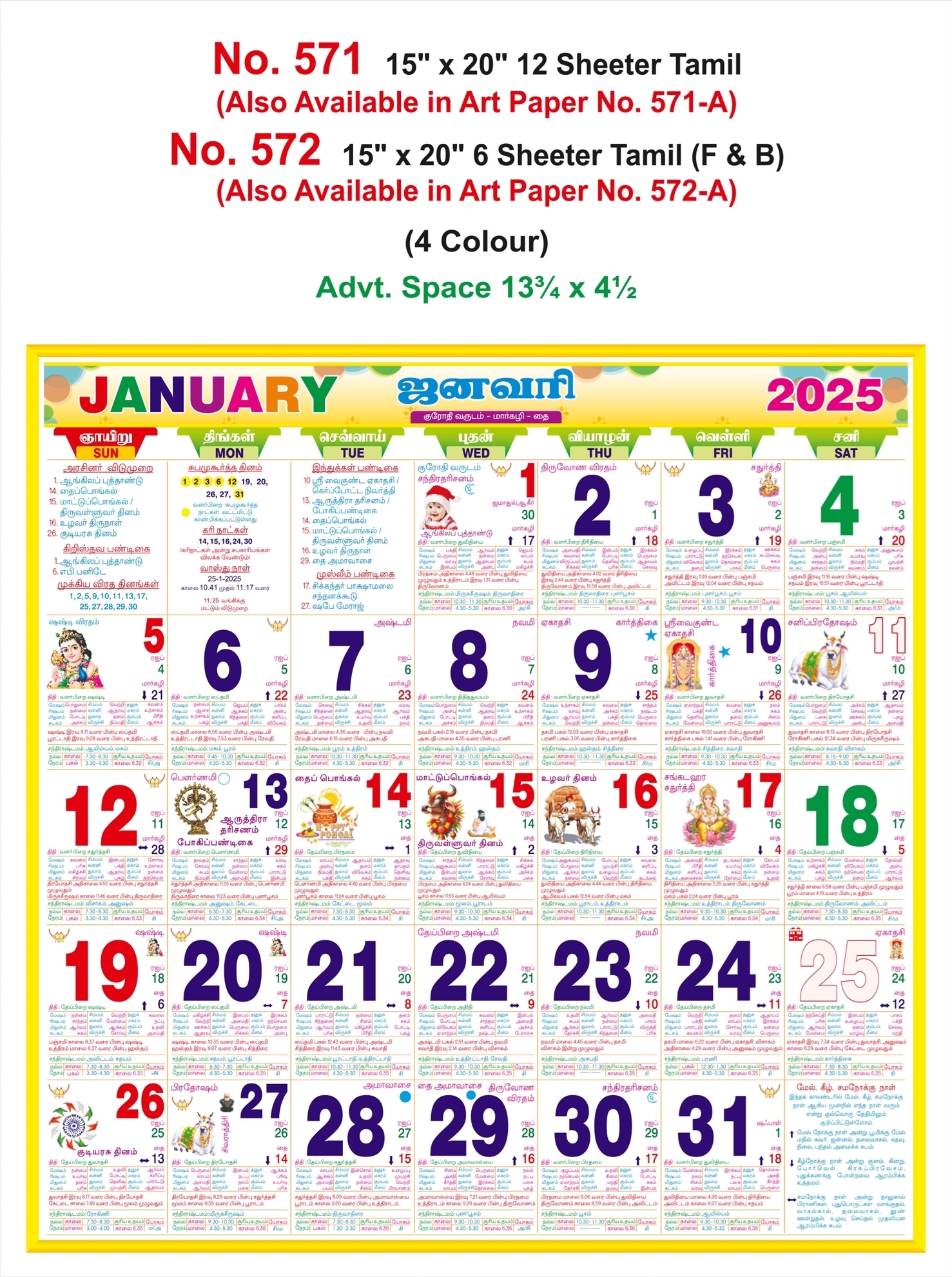 R573 Tamil - 15x20" 12 Sheeter Monthly Calendar Printing 2025