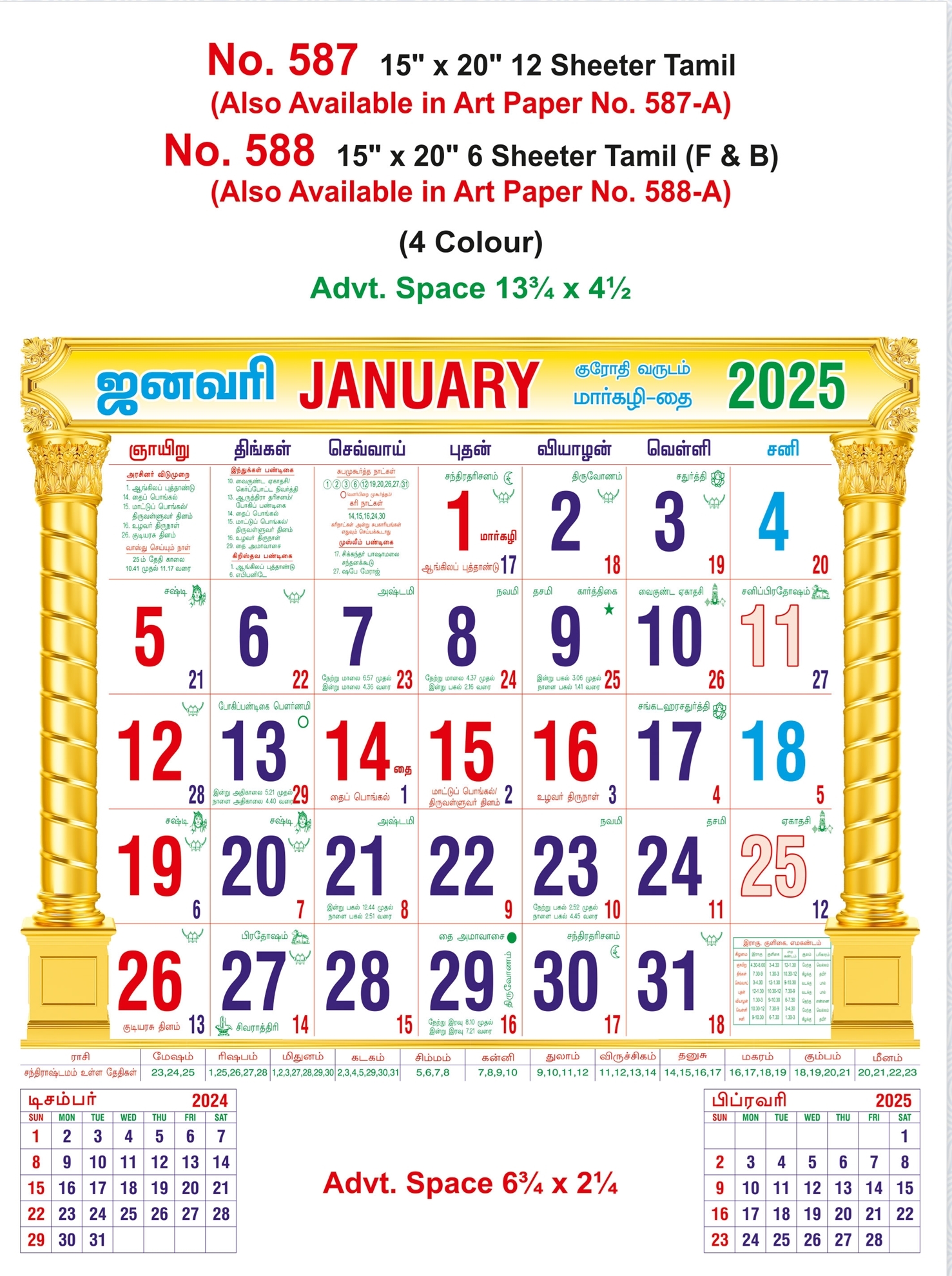 R587 Tamil - 15x20" 12 Sheeter Monthly Calendar Printing 2025