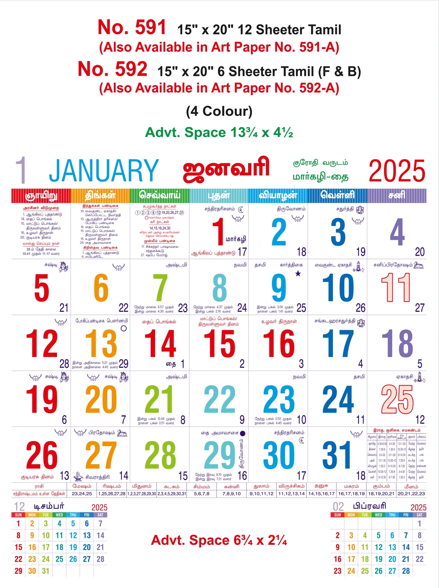 R591 Tamil - 15x20" 12 Sheeter Monthly Calendar Printing 2025