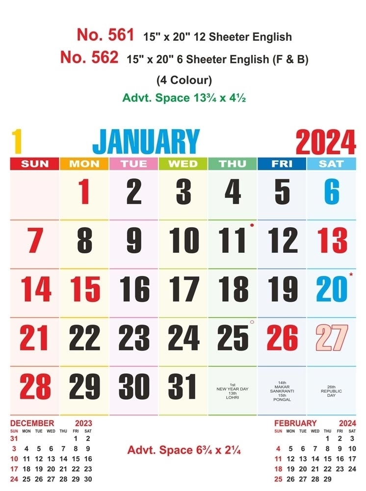 Key Features of R562 English (F&B) - 15x20" 6 Sheeter Monthly Calendar Printing 2024