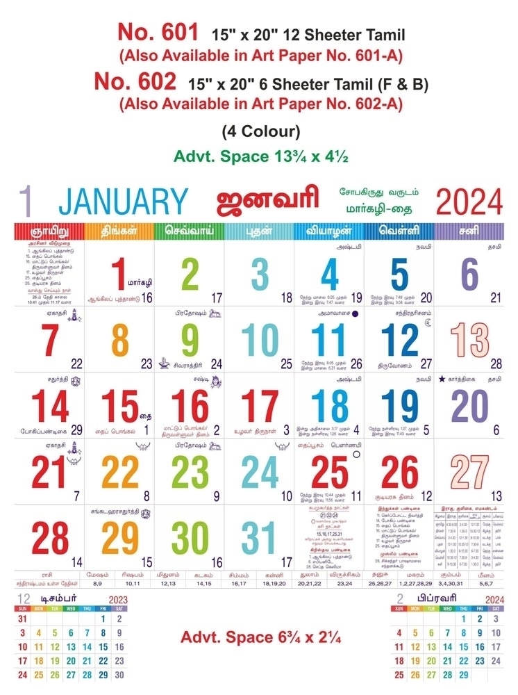 R604 Tamil - 15x20" 6 Sheeter Monthly Calendar Printing 2024