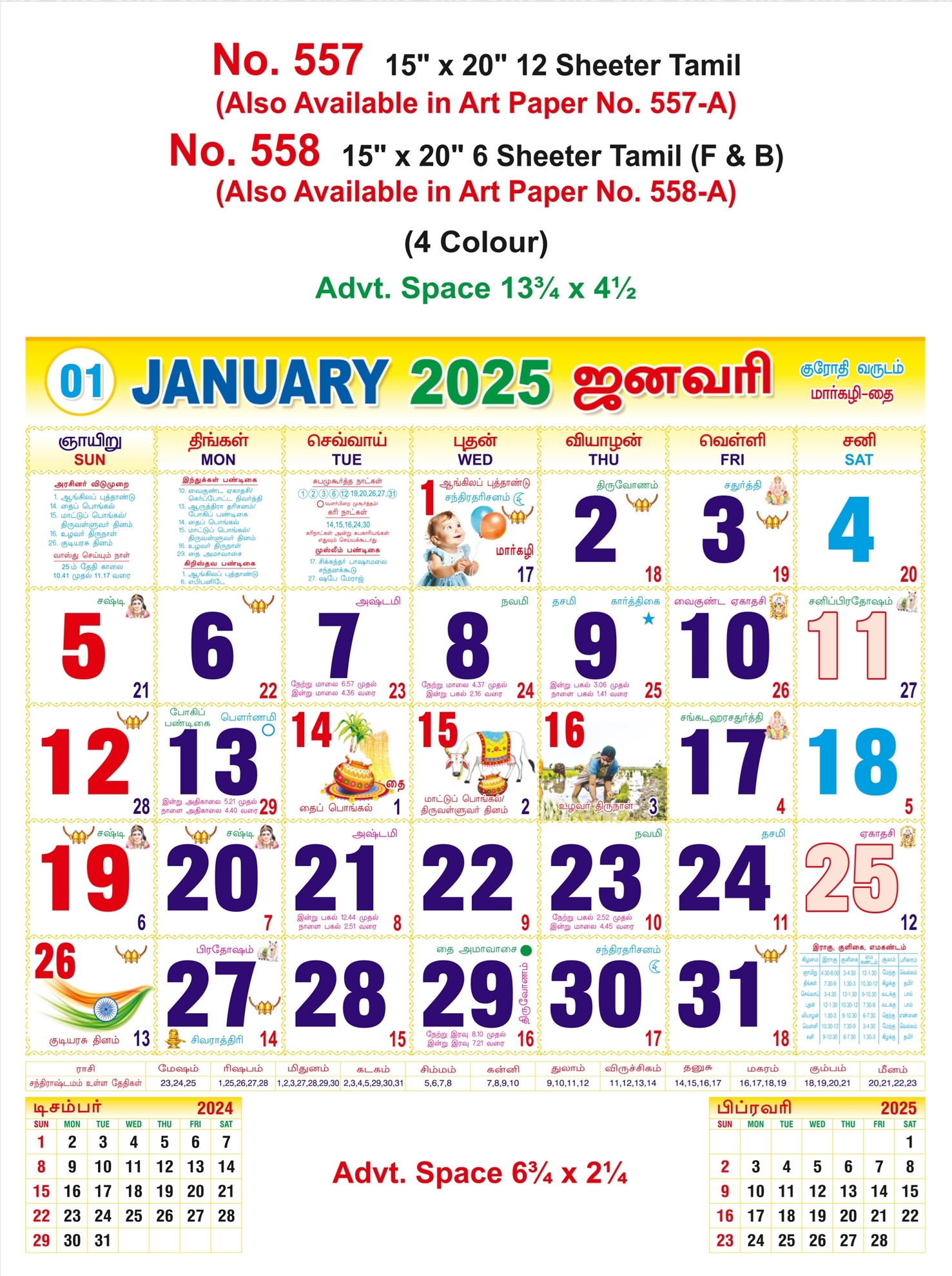 Key Features of R558 Tamil (F&B) - 15x20" 6 Sheeter Monthly Calendar Printing 2025