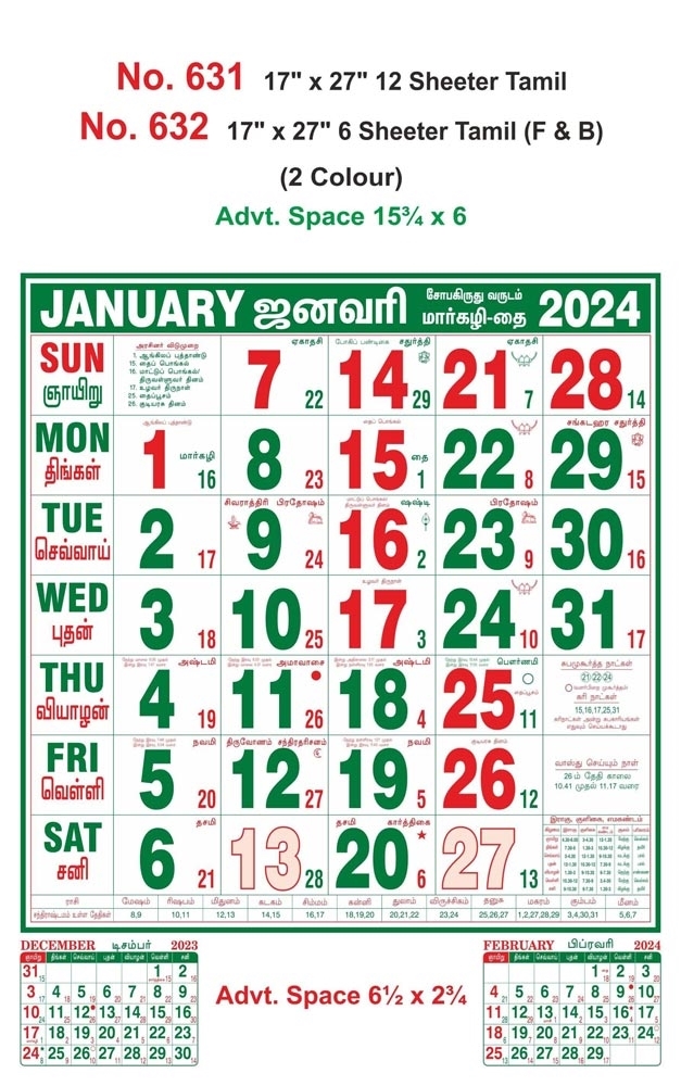 R631 Tamil - 17x27" 12 Sheeter Monthly Calendar Printing 2024