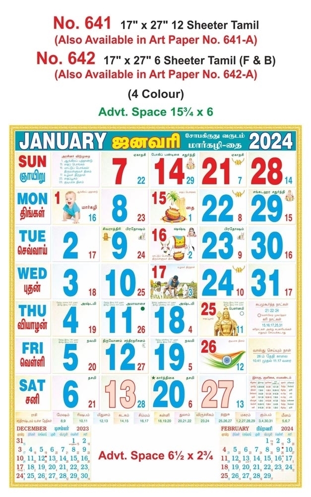 R642 Tamil (F&B) - 17x27" 6 Sheeter Monthly Calendar Printing 2024