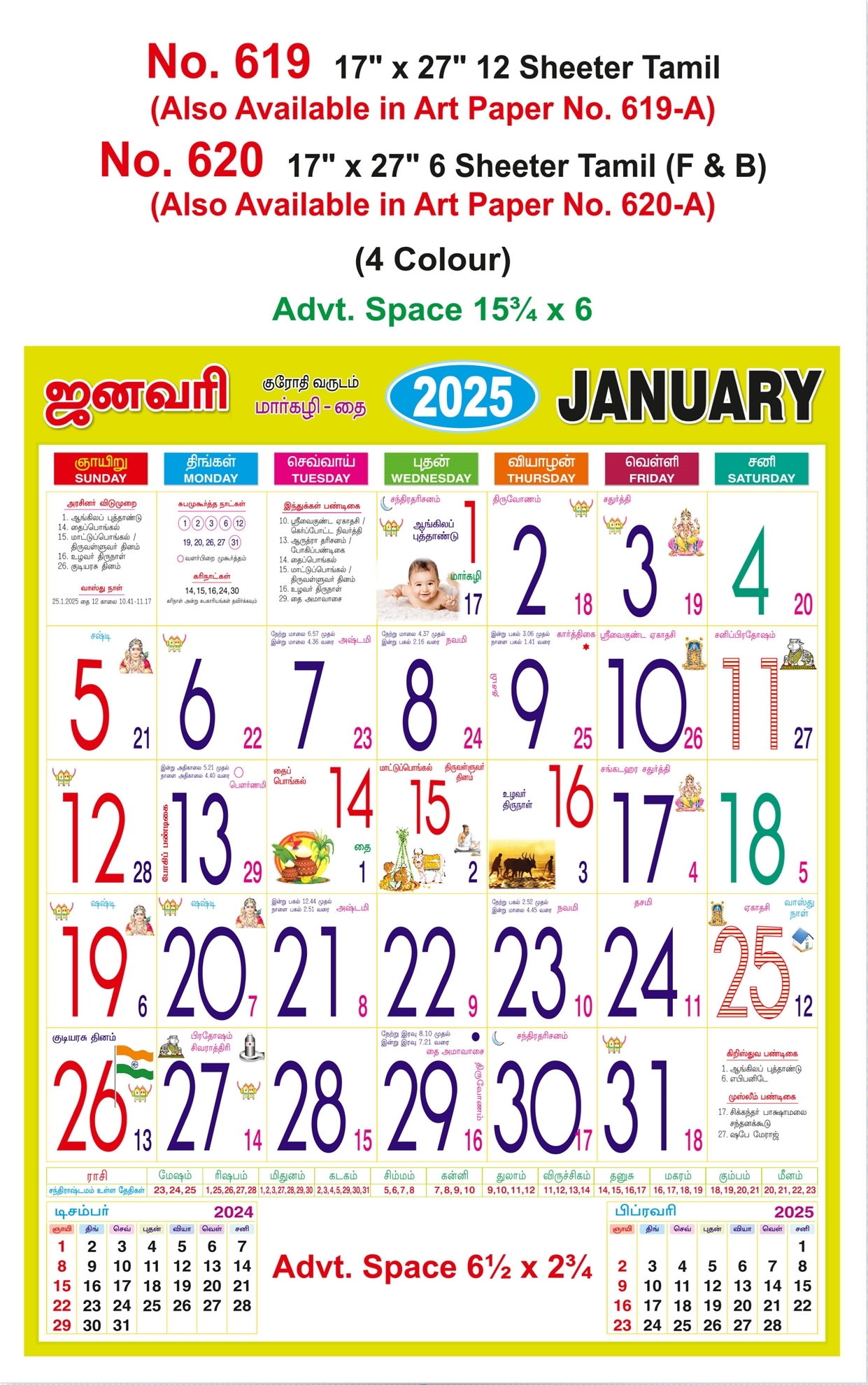 R620 Tamil (F&B) - 17x27" 6 Sheeter Monthly Calendar Printing 2025