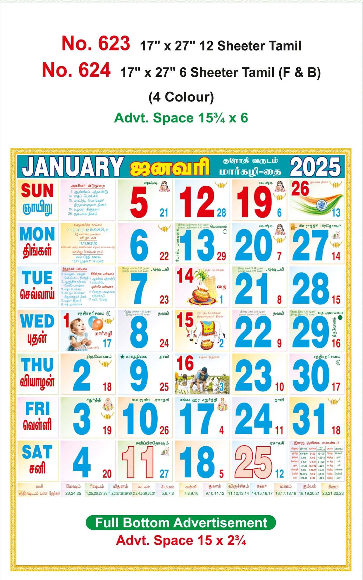 R624 Tamil (F&B) - 17x27" 6 Sheeter Monthly Calendar Printing 2025