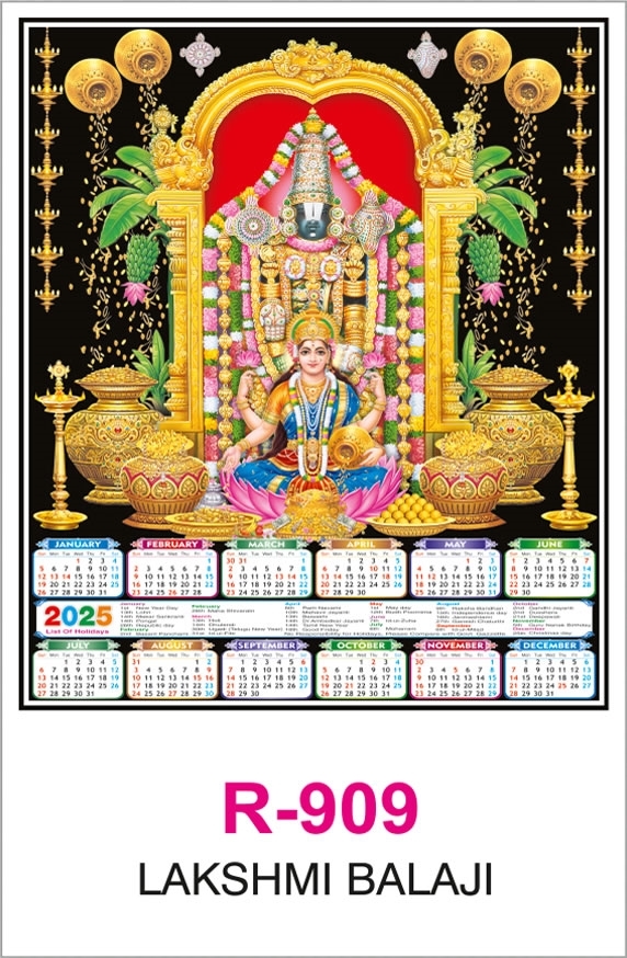 R909 LAKSHMI BALAJI - 19x29" Real Art Calendar Printing 2025