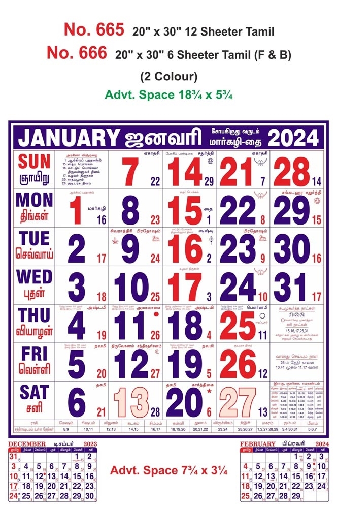 R665 Tamil - 20x30" 12 Sheeter Monthly Calendar Printing 2024
