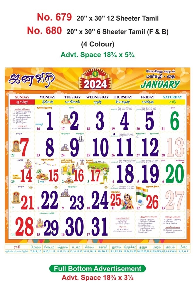 R675 Tamil - 20x30" 12 Sheeter Monthly Calendar Printing 2024