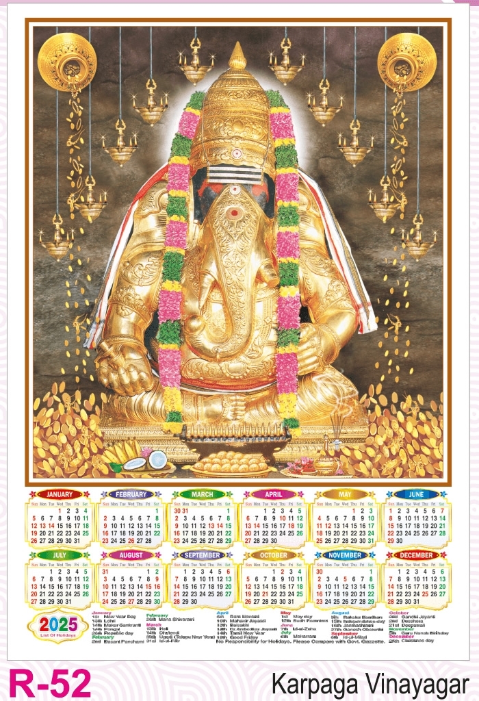 R52 Karpaga Vinayagar - Polyfoam Calendar Printing 2025