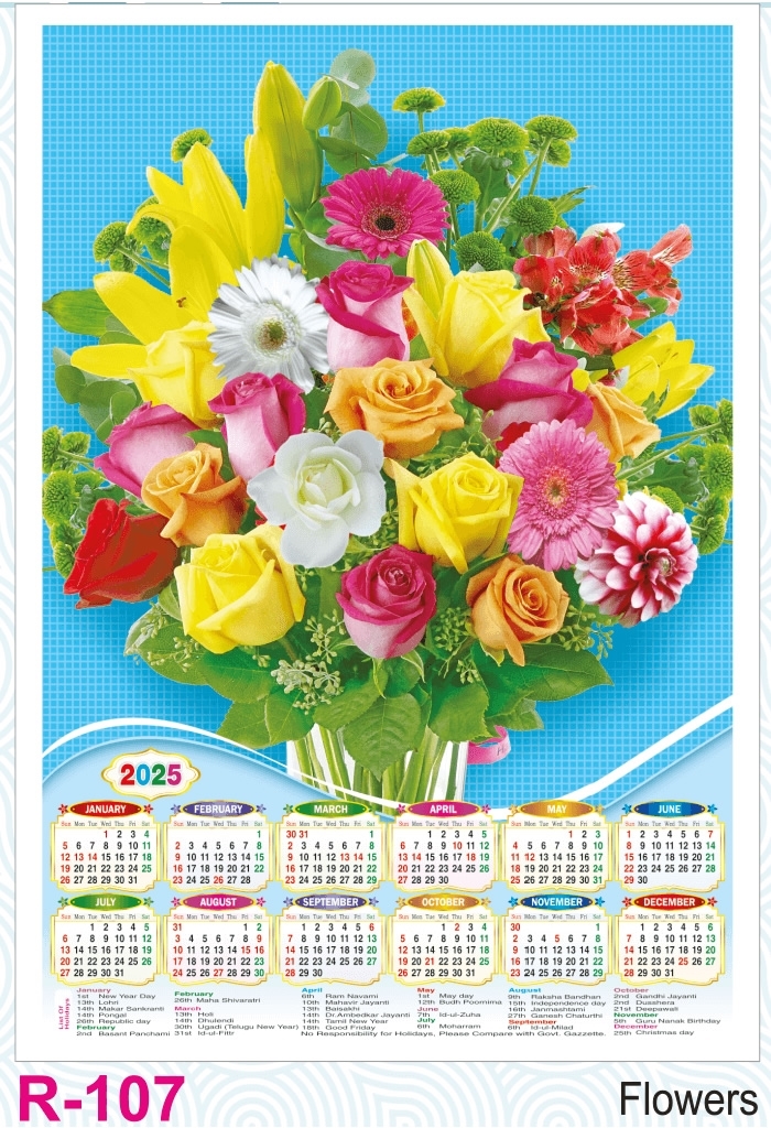 R107 Flowers - Polyfoam Calendar Printing 2025